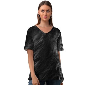 - Product Name: yanfind V Neck T-shirt for Women Randy Rodriguez Black Dark Lion Wild Predator Summer Top Short Sleeve Casual Loose